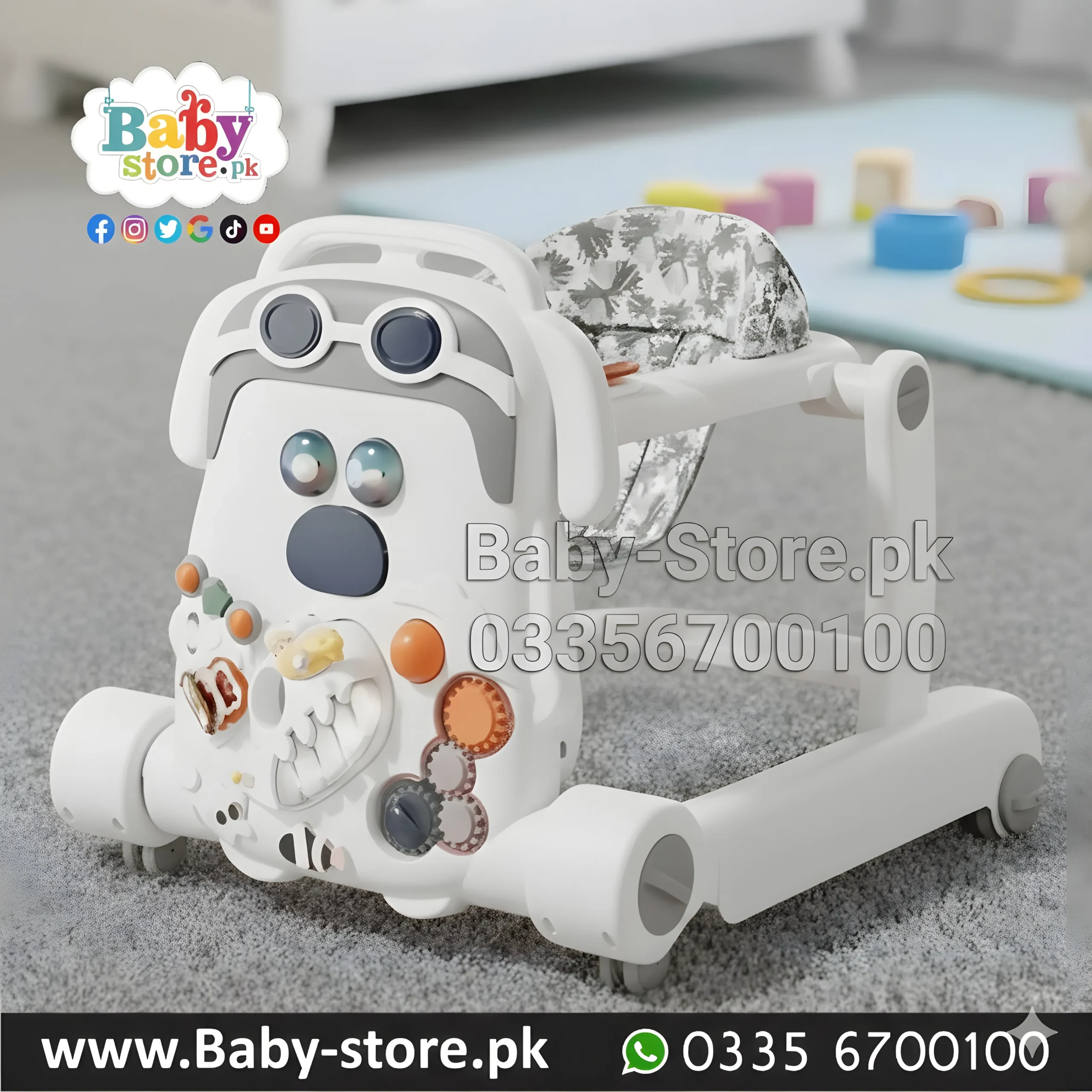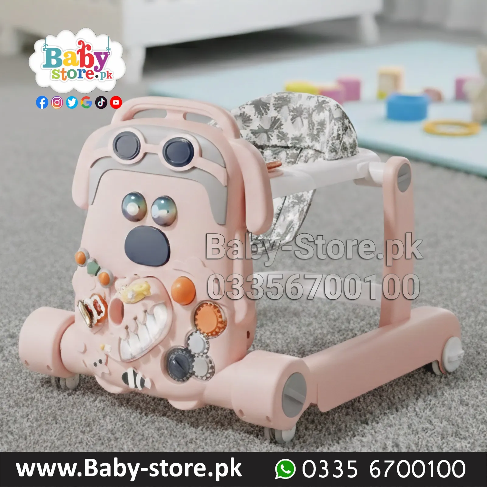 Make those first steps unforgettable with our Playful Puppy Baby Walker. Combining a cute, character-driven design with a comprehensive activity center, this walker is the perfect companion for your baby’s developmental journey. It offers a secure way for your little one to build leg strength while staying engaged with a variety of interactive toys.